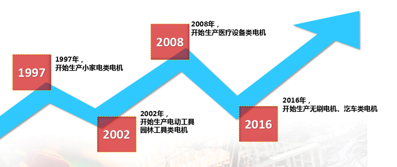 研发成功并上市破壁直流电机,粉碎效果提升70%,电机寿命提升30%,转速达20000转/min,是普通电机的2倍,产品主要应用于豆浆机,开启豆浆“无渣”时代。